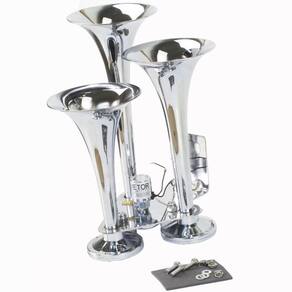 Buzina A Ar Para Trem E Navio 3 Cornetas Cromada