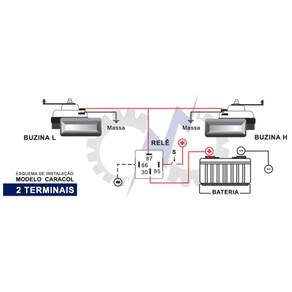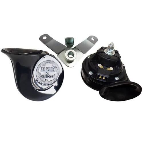 Buzina Caracol Dupla Grave Agudo 410Hz 490Hz B56 12v FIAT Único - Buzina Caracol Dupla Grave Agudo 410Hz 490Hz 12v FIAT Buzina modelo 2 tons Sem relê Acompanha suporte de fixação modelo Alojamento de Nylon com alma de aço Conector de ligação modelo JPT Aplicações: FIAT: - Palio até 2004 - Palio Weekend até 2004 - Siena até 2004 : - N 46443138 Esquema de instalação MODELO CARACOL 2 TERMINAIS Para uma boa instalação do modelo buzina CARACOL, são necessários alguns cuidados na hora da instalação. Instale a buzina na carroceria de forma que evite vibrações danosas ao conjunto. Posicione a buzina de modo que o caracol fique protegido contra a de água de chuva ou lavagem de motor. É imprescindível contato perfeito entre as buzinas e a massa negativa. Abaixo esquema de ligação para dois terminais com o negativo na massa e o botão de comando no positivo. Conteúdo da Embalagem: 1- Buzina Caracol Dupla Grave Agudo 410Hz 490Hz 12v FIAT Características Gerais do Produto: Marca: BZM Tensão de Entrada: 12 V É kit: Não Modelo Produto: B56 Acompanha o produto: 1 - Buzina Caracol Dupla Grave Agudo 410Hz 490Hz B56 12v FIAT : Sem Marca: Não Informado