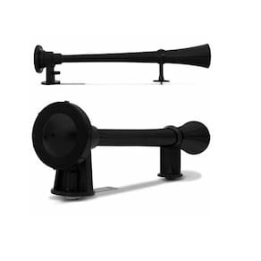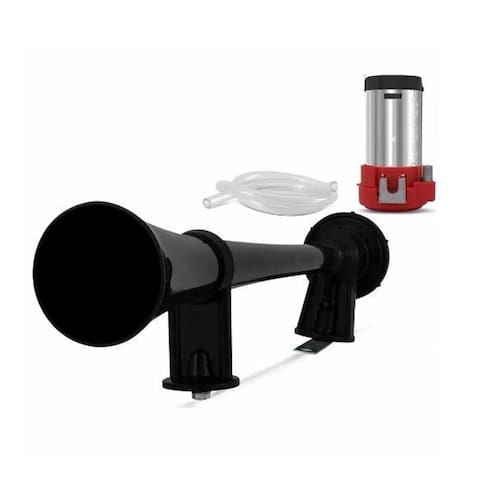 Buzina Marítima, 12v, sistema elétrico de compressão. Reproduz som semelhante ao navio. Material de alta resistência, pode ser utilizada em carros, caminhões 12v, utilitários e até motos 12v. Contém motor compressor, corneta e kit fixação. Produto UNIVERSAL pode ser instalado em qualquer veículo que utilize alimentação 12 volts. Também compatível em motos, caminhões e barcos 12v, sendo possível a instalação até como alarme domiciliar. Produz som de alta frequência Contém: 1 Corneta PRETA 1 Kit fixação 1 Compressor de ar Especificação: Alimentação: 12v Motor elétrico de corrente contínua 12 volts Cor: PRETA Tamanho: 40cm da corneta Acompanha suporte para fixação de base Ean: 7898057971373