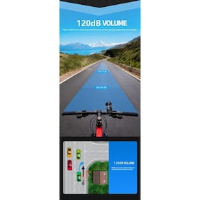 -peso: 48 g -tamanho: 4,8 x 4,6 x 8 cm -material: ABS + PC -decibel: 120 db -grau impermeável: IPX 4 -tipo de bateria: CR2032 -tensão da bateria: 3Vx2 -duas baterias de botão podem ser usadas por 5000 vezes CR2032 -design impermeável IPX4 -compatível com a maioria dos barracas de bicicleta de 22,2 a 31,8 mm
