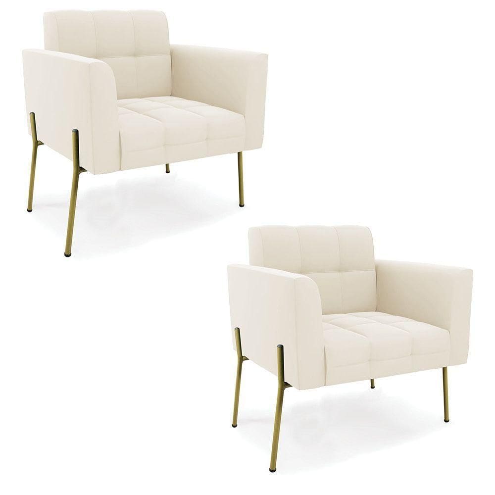 Sofá Namoradeira E 1 Poltrona Base Industrial Dourado Ana Sintético Pu Branco - Ibiza