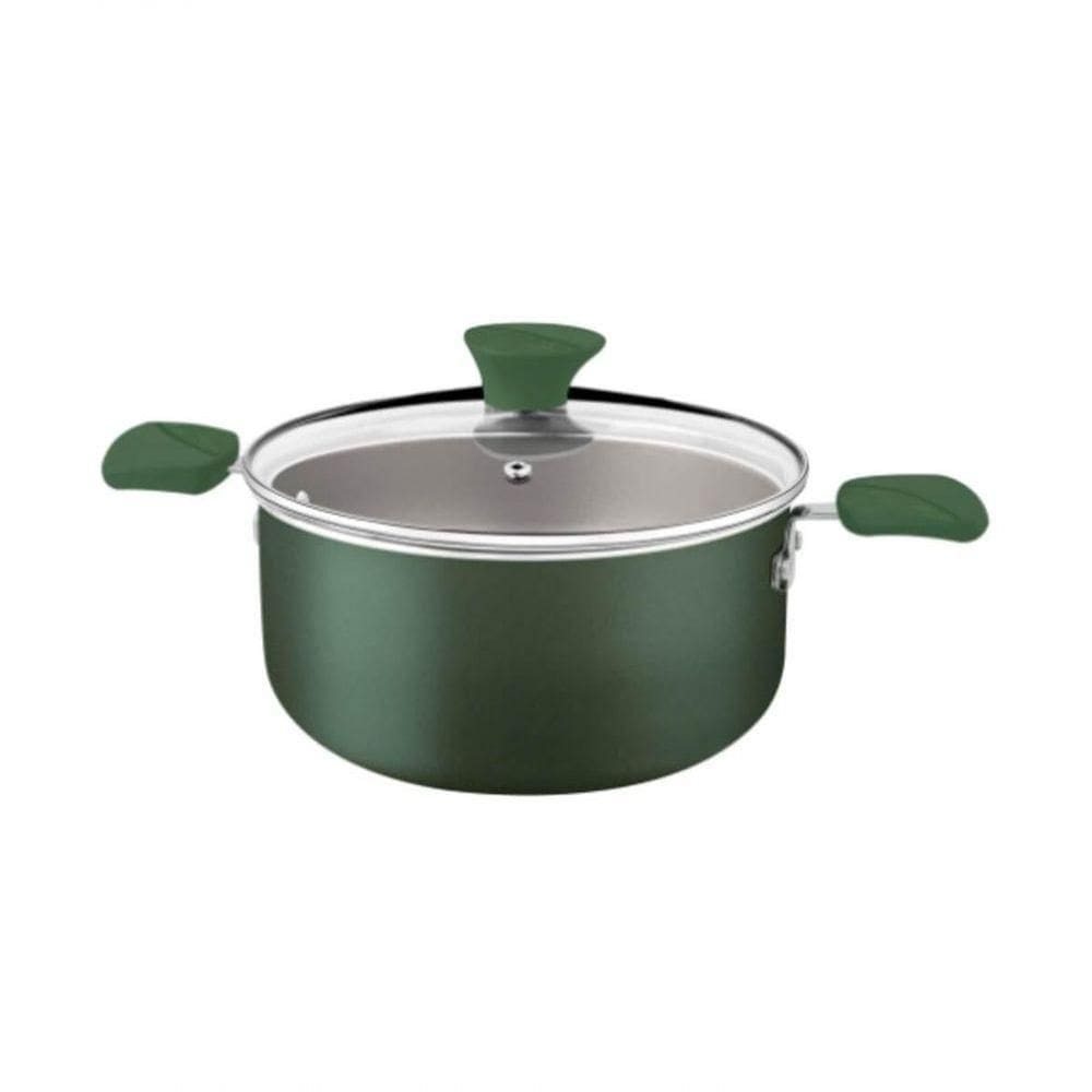 Panela Caçarola Ferro Alça Madeira Tampa Vidro 24cm 3,4L