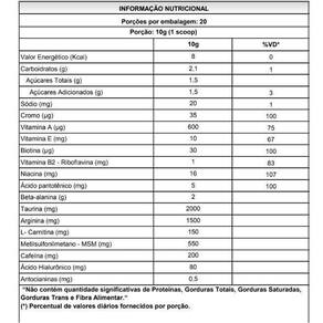 C4 Woman 200g - Sabor: Tangerina C4 Woman 200g - Pre-Workout C4 WOMAN é o único e exclusivo pré treino com benefícios que vão além de redução da fadiga e melhor desempenho. Desenvolvido especialmente para as mulheres com benefícios funcionais que potencializam o e cuidam da saúde da pele, unhas e cabelo. C4 WOMAN contém beta alanina, cafeína, taurina, arginina, L-carnitina e L-tirosina que proporcionarão melhora do foco, performance, redução da fadiga e queimação muscular, oxidação da gordura corporal, utilizando-a como fonte de energia e melhor fluxo sanguíneo e oxigenação dos músculos. diferenciais: - Vitaminas que possuem ação , melhoram elasticidade, hidratação da pele, reduz oleosidade e lesões de acne; - Vitaminas que possuem ação , melhoram elasticidade, hidratação da pele, reduz oleosidade e lesões de acne; - Ácido Hialurônico que suaviza as rugas, linhas finas de expressão e melhora o viço da pele; - MSM importante agente , alivia a dor durante os exercícios e combinado com o ácido hialurônico reduz inflamações e processos degenerativos nas articulações. Além de contribuir com a lubrificação e absorção de impactos nas articulações. benefícios: - Melhoria do Desempenho Físico;- Redução da Fadiga e Queimação Muscular;- Utilização de Gordura Corporal como Fonte de Energia;- Melhor Fluxo Sanguíneo e Oxigenação Muscular;- Ação ;- Suporte à Saúde Articular;- Cuidados com a Saúde da Pele, Unhas e Cabelo.