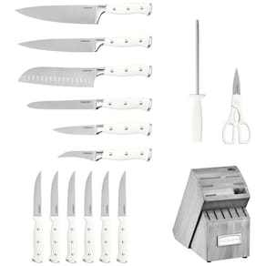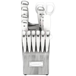 Os talheres de rebite triplo forjado Cuisinart Classic possuem lâminas superiores de aço inoxidável de alto carbono para precisão e exatidão. Embaladas em um conjunto de blocos de 15 peças e estoque aberto, essas facas extraordinárias têm lâminas afiadas que se estreitam gradualmente até uma borda extremamente afiada e fina. Construídas para estabilidade e controle perfeitos, as facas são projetadas com uma almofada de segurança forjada extra larga e rebites de aço inoxidável que prendem a lâmina ao cabo confortável Marca: Não Informado