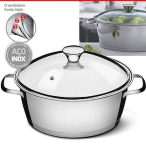 Caçarola Aço Inox Avulsa Fundo Triplo com tampa de Vidro Ø24cm 4,2L Tramontina
