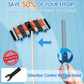 - Controle direcional: a alavanca de direção universal permite ajustes direcionais com uma mão, economizando até 80% do esforço, para uma limpeza eficiente e rápida da piscina