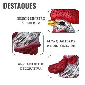 Destaque-se na decoração de Halloween com esta surpreendente Cabeça de Galo. Ideal para festas temáticas ou para assustar os convidados, este produto promete deixar todos impressionados com seu design sinistro e impactante.