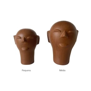 Cabeça em cerâmica cida lima média as cabeças surgiram através de uma encomenda feita para uma senhora que precisava de uma cabeça para pagar uma promessa a nossa senhora da conceição, e nesse momento, seu filho jailson, no momento com apenas 12 anos, criou a primeira cabeça. Um sucesso no brasil. Sobre a artesã: cida lima é natural do município de belo jardim, no agreste pernambucano. Começou a colocar as mãos no barro muito cedo, com apenas oito anos de idade, para ajudar família. Considerada mestre artesã pelo programa de artesanato brasileiro. Sugestão de uso: pode ser utilizado em cima de mesas, estantes e prateleiras. Material: barro cor: marrom tamanho aproximado: 21x17x14cm por ser artesanal, pode ocorrer alteração no tom e tamanho de uma peça para outra. Marca: Digon Store