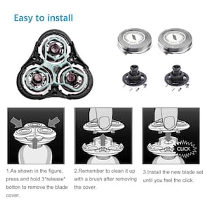 - [Fácil substituição e instalação]: Fácil de tirar e substituir uma nova cabeça - apenas dois minutos. Após a instalação, coloque uma gota de óleo em cada bico e opere por 10 segundos para obter a melhor experiência. É recomendável que você substitua a cabeça de corte a cada 12 meses para obter o máximo desempenho de barbear.