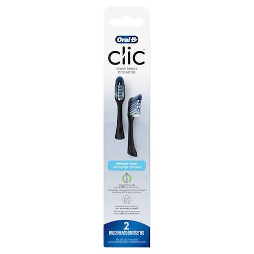 Oral-B Cabeças de escova de substituição Clic Toothbrush Ultimate Clean, preta, 2 unidades - Oral-B Clic é uma escova de dentes manual revolucionária que combina design moderno com excelente desempenho de limpeza para uma boca saudável - Compatível com escovas de dentes manuais Oral-B Clic - As cerdas cruzadas da próxima geração apresentam tecnologia X-Filament proporcionando uma experiência de limpeza excepcional - Cada cerdas em forma de X tem 4 bordas ativas para alcançar os cantos e recantos dos dentes - Reutilize 80% do seu pincel. Atualize sua cabeça de escova