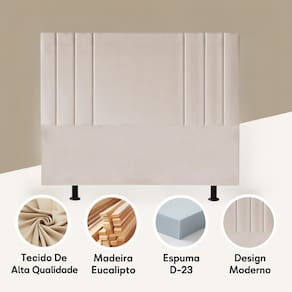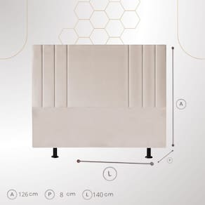 Cabeceira Grecia: Elegância e Conforto para o Quarto A cabeceira Grecia é a escolha perfeita para transformar o quarto em um espaço de aconchego sofisticado. Seu design clean, marcado por relevos verticais discretos, transmite equilíbrio e modernidade, harmonizando com diferentes estilos decorativos – do contemporâneo funcional ao minimalista elegante.   Versátil, adapta-se com facilidade a diversos projetos: pode compor um ambiente sereno e acolhedor quando combinada com estofados em tons suaves, ou se tornar um destaque sofisticado ao lado de acessórios marcantes e coloridos. Sua estética atemporal funciona como moldura perfeita para valorizar a cama e dar protagonismo ao espaço de descanso.   Mais do que beleza, a cabeceira Grecia oferece praticidade e durabilidade em sua estrutura, tornando-se um investimento que alia estilo e funcionalidade. Seja em suítes modernas, quartos de hóspedes ou ambientes planejados, ela se adapta a diferentes propostas sem perder sua identidade refinada.   Uma peça que não apenas completa o quarto, mas redefine o ambiente, trazendo charme e requinte na medida certa.   ESPECIFICAÇÕES:   Design Exclusivo: Geométrico e elegante, com relevos verticais que valorizam a simetria e criam um visual sofisticado. Material: Estrutura em madeira de eucalipto, resistente e durável. Conforto: Espuma de densidade D23, garantindo apoio firme e aconchegante para momentos de descanso e leitura na cama. Versatilidade: Combina com diferentes estilos decorativos, do contemporâneo ao minimalista, oferecendo uma base neutra e elegante para composições diversas. Durabilidade: Produzida com materiais de alta qualidade, pensada para acompanhar a rotina diária sem perder o charme e a sofisticação.   DIMENSÕES:    Altura: 126 cm Largura: 140 cm Profundidade: 8 cm Altura dos pés: 13 cm Peso: 9 Kg   MOTAGEM   - Produto vai montado.   GARANTIA DA FÁBRICA     Cada peça passa por uma curadoria rigorosa que assegura beleza, qualidade e durabilidade. Ainda assim, caso algum produto apresente defeito de fabricação dentro de 90 dias após a entrega, nosso suporte  humano, atencioso e altamente profissional estará pronto para atender você com agilidade e eficiência. Valorizamos sua confiança e estamos comprometidos em oferecer soluções rápidas que preservem sua experiência positiva com a marca. Aqui, garantir sua tranquilidade é parte do nosso padrão de excelência.   CUIDADOS A LIMPEZA:   Utilize um pano limpo e levemente úmido. Indicado para ambientes internos, evite exposição direta ao sol, calor excessivo e umidades.   INFORMAÇÕES IMPORTANTES   - Pode haver diferença entre a imagem e o produto real devido a tratamento de imagens e calibração do monitor. - Não garantimos a mesma cor para futuras compras devido à variação em lotes de tecido. -  Não inclui objetos de decoração e eletros. - Confira as medidas para garantir que o produto passe por escadas, elevadores e portas.