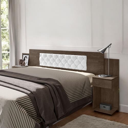 Cabeceira Ajustável Arabella Chocolate com Capitonê Branco - Marrom