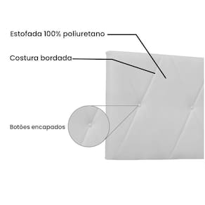 Este móvel é feito a partir de madeira industrializada, com materiais de primeira linha e botões forrados costurados junto ao tecido, com revestimento de espuma D-23, que promove muito mais conforto. Se você é daqueles que gosta de passar horas sentado na cama, não precisará mais se apoiar na parede fria! Esta peça irá te proteger e te aquecer todos os dias e além de tudo personalizar seu cantinho!