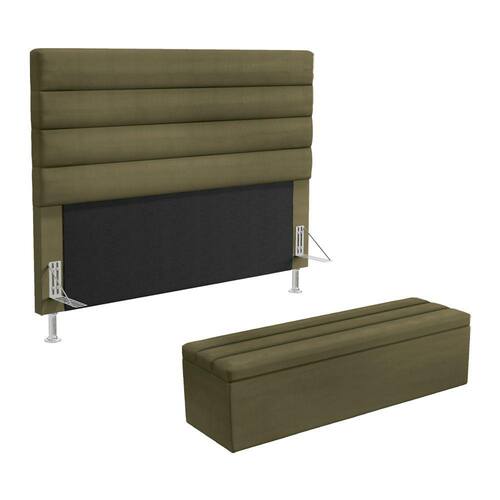 O Kit Cabeceira Atlas foi inspirada para você, ela possui um design clássico, perfeita para seu espaço, possui também detalhes modernos na horizontal e um ótimo acabamento, tudo isso com ótimo custo benefício. Possui dois pés de 12 cm e fixação via frames para a sustentação do box, não sendo necessário furar a sua cama, apenas encaixa-la nos suportes da cabeceira. Junto com a Calçadeira Ursa que possui uma ótima capacidade de armazenamento interno, podendo armazenar cobertores, almofadas, entre outros. Adquira já! Dimensões da CabeceiraLargura: 140 cmAltura: 127 cmProfundidade: 10 cmPeso: 15 KgDimensões da CalçadeiraLargura: 140 cmAltura: 45 cmProfundidade: 46 cmPeso: 15 KgDimensões do Produto embaladoVolume 1Largura: 142 cmAltura: 129 cmProfundidade: 12 cmPeso: 17 kgVolume 2Largura: 142 cmAltura: 47 cmProfundidade: 48 cmPeso: 17 kgCaracterísticas do Produto:Madeira de eucalipto proveniente de reflorestamentoFixação com grampos galvanizadosEspuma Poliuretano D20Revestimento: VeludoCor: CapuccinoTamanho: Casal Padrão para cama box de 138 cmPossui pés: SimTipo de pés: 2 pés PVC de 12 cm e 4 sapatasEmbalagem: plástico bolha, papelão ondulado, malha, plásticoFixação diretamente no box através de framesGarantia de 3 meses contra defeitos de fábrica.Diferenciais: - Madeira de alta qualidade- Design moderno- Material resistente- Ótimo acabamento- Estrutura reforçadaSistema de Montagem: O produto é enviado montado, sendo necessário apenas a fixação dos frames e pés.Manual de Montagem: SimVolume: 2 VolumesMontagem: Recomendamos que seja feita por um profissionalRecomendação de Limpeza: Utilize pano levemente úmidoObservações importantes- Produto para uso residencial em ambiente interno, não devendo ficar exposto diretamente ao sol, calor e umidades excessivas.- Pode haver alguma diferença de tonalidade entre a imagem e o produto real, por conta do tratamento de imagens e a calibração de cores do seu monitor.- As imagens são meramente ilustrativas, não acompanham objetos de decoração e eletrônicos.