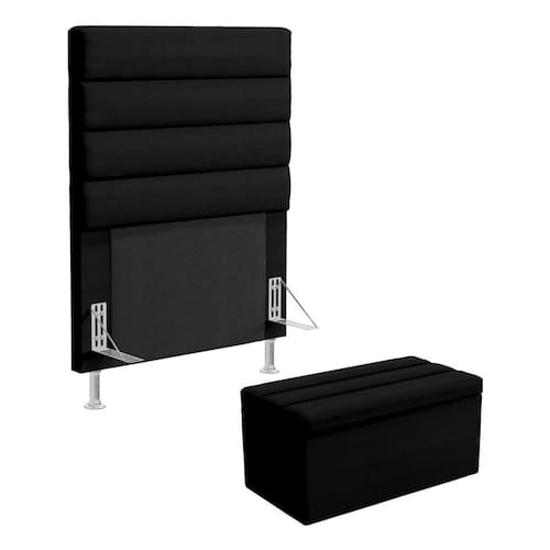 O Kit Cabeceira Atlas foi inspirada para você, ela possui um design clássico, perfeita para seu espaço, possui também detalhes modernos na horizontal e um ótimo acabamento, tudo isso com ótimo custo benefício. Possui dois pés de 12 cm e fixação via frames para a sustentação do box, não sendo necessário furar a sua cama, apenas encaixa-la nos suportes da cabeceira. Junto com a Calçadeira Ursa que possui uma ótima capacidade de armazenamento interno, podendo armazenar cobertores, almofadas, entre outros. Adquira já! Dimensões da CabeceiraLargura: 90 cmAltura: 127 cmProfundidade: 10 cmPeso: 10 KgDimensões da CalçadeiraLargura: 92 cmAltura: 45 cmProfundidade: 46 cmPeso: 10 KgDimensões do Produto embaladoVolume 1Largura: 92 cmAltura: 129 cmProfundidade: 12 cmPeso: 12 kgVolume 2Largura: 92 cmAltura: 47 cmProfundidade: 48 cmPeso: 12 kgCaracterísticas do Produto:Madeira de eucalipto proveniente de reflorestamentoFixação com grampos galvanizadosEspuma Poliuretano D20Revestimento: CouroCor: PretoTamanho: Solteiro para cama box de 88 cmPossui pés: SimTipo de pés: 2 pés PVC de 12 cm e 4 sapatasEmbalagem: plástico bolha, papelão ondulado, malha, plásticoFixação diretamente no box através de framesGarantia de 3 meses contra defeitos de fábrica.Diferenciais: - Madeira de alta qualidade- Design moderno- Material resistente- Ótimo acabamento- Estrutura reforçadaSistema de Montagem: O produto é enviado montado, sendo necessário apenas a fixação dos frames e pés.Manual de Montagem: SimVolume: 2 VolumesMontagem: Recomendamos que seja feita por um profissionalRecomendação de Limpeza: Utilize pano levemente úmidoObservações importantes- Produto para uso residencial em ambiente interno, não devendo ficar exposto diretamente ao sol, calor e umidades excessivas.- Pode haver alguma diferença de tonalidade entre a imagem e o produto real, por conta do tratamento de imagens e a calibração de cores do seu monitor.- As imagens são meramente ilustrativas, não acompanham objetos de decoração e eletrônicos.