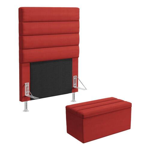 O Kit Cabeceira Atlas foi inspirada para você, ela possui um design clássico, perfeita para seu espaço, possui também detalhes modernos na horizontal e um ótimo acabamento, tudo isso com ótimo custo benefício. Possui dois pés de 12 cm e fixação via frames para a sustentação do box, não sendo necessário furar a sua cama, apenas encaixa-la nos suportes da cabeceira. Junto com a Calçadeira Ursa que possui uma ótima capacidade de armazenamento interno, podendo armazenar cobertores, almofadas, entre outros. Adquira já! Dimensões da CabeceiraLargura: 90 cmAltura: 127 cmProfundidade: 10 cmPeso: 10 KgDimensões da CalçadeiraLargura: 92 cmAltura: 45 cmProfundidade: 46 cmPeso: 10 KgDimensões do Produto embaladoVolume 1Largura: 92 cmAltura: 129 cmProfundidade: 12 cmPeso: 12 kgVolume 2Largura: 92 cmAltura: 47 cmProfundidade: 48 cmPeso: 12 kgCaracterísticas do Produto:Madeira de eucalipto proveniente de reflorestamentoFixação com grampos galvanizadosEspuma Poliuretano D20Revestimento: CouroCor: VermelhoTamanho: Solteiro para cama box de 88 cmPossui pés: SimTipo de pés: 2 pés PVC de 12 cm e 4 sapatasEmbalagem: plástico bolha, papelão ondulado, malha, plásticoFixação diretamente no box através de framesGarantia de 3 meses contra defeitos de fábrica.Diferenciais: - Madeira de alta qualidade- Design moderno- Material resistente- Ótimo acabamento- Estrutura reforçadaSistema de Montagem: O produto é enviado montado, sendo necessário apenas a fixação dos frames e pés.Manual de Montagem: SimVolume: 2 VolumesMontagem: Recomendamos que seja feita por um profissionalRecomendação de Limpeza: Utilize pano levemente úmidoObservações importantes- Produto para uso residencial em ambiente interno, não devendo ficar exposto diretamente ao sol, calor e umidades excessivas.- Pode haver alguma diferença de tonalidade entre a imagem e o produto real, por conta do tratamento de imagens e a calibração de cores do seu monitor.- As imagens são meramente ilustrativas, não acompanham objetos de decoração e eletrônicos.
