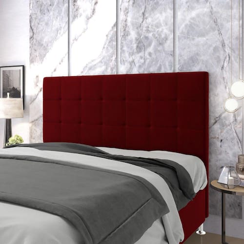 Características do Produto: Madeira de eucalipto proveniente de reflorestamento Fixação com grampos galvanizados Espuma Poliuretano D20 Revestimento: Sued Cor: Bordô Tamanho: Casal padrão para cama box de 138 cm Possui pés: Sim Tipo de pés: 2 pés PVC de 12 cm Possui detalhes em quadriculado Embalagem: plástico bolha, papelão ondulado, malha, plástico Fixação diretamente no box através de frames Garantia de 3 meses contra defeitos de fábrica.