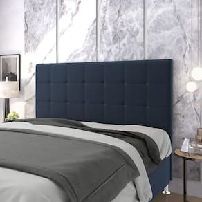 Características do Produto: Madeira de eucalipto proveniente de reflorestamento Fixação com grampos galvanizados Espuma Poliuretano D20 Revestimento: Sued Cor: Azul Marinho Tamanho: Casal padrão para cama box de 138 cm Possui pés: Sim Tipo de pés: 2 pés PVC de 12 cm Possui detalhes em quadriculado Embalagem: plástico bolha, papelão ondulado, malha, plástico Fixação diretamente no box através de frames Garantia de 3 meses contra defeitos de fábrica.