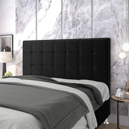 Características do Produto: Madeira de eucalipto proveniente de reflorestamento Fixação com grampos galvanizados Espuma Poliuretano D20 Revestimento: Veludo Cor: Preto Tamanho: Queen para cama box de 158 cm Possui pés: Sim Tipo de pés: 2 pés PVC de 12 cm Possui detalhes em quadriculado Embalagem: plástico bolha, papelão ondulado, malha, plástico Fixação diretamente no box através de frames Garantia de 3 meses contra defeitos de fábrica.