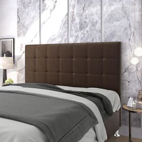 Características do Produto: Madeira de eucalipto proveniente de reflorestamento Fixação com grampos galvanizados Espuma Poliuretano D20 Revestimento: Veludo Cor: Marrom Chocolate Tamanho: Queen para cama box de 158 cm Possui pés: Sim Tipo de pés: 2 pés PVC de 12 cm Possui detalhes em quadriculado Embalagem: plástico bolha, papelão ondulado, malha, plástico Fixação diretamente no box através de frames Garantia de 3 meses contra defeitos de fábrica.