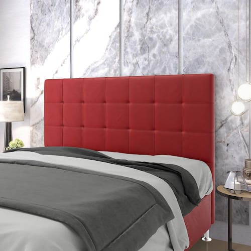 Características do Produto: Madeira de eucalipto proveniente de reflorestamento Fixação com grampos galvanizados Espuma Poliuretano D20 Revestimento: Veludo Cor: Vermelho Tamanho: King para cama box de 193 cm Possui pés: Sim Tipo de pés: 2 pés PVC de 12 cm Possui detalhes em quadriculado Embalagem: plástico bolha, papelão ondulado, malha, plástico Fixação diretamente no box através de frames Garantia de 3 meses contra defeitos de fábrica.