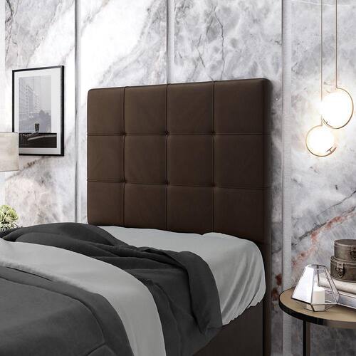Características do Produto: Madeira de eucalipto proveniente de reflorestamento Fixação com grampos galvanizados Espuma Poliuretano D20 Revestimento: Veludo Cor: Marrom Chocolate Tamanho: Solteiro para cama box de 88 cm Possui pés: Sim Tipo de pés: 2 pés PVC de 12 cm Possui detalhes em quadriculado Embalagem: plástico bolha, papelão ondulado, malha, plástico Fixação diretamente no box através de frames Garantia de 3 meses contra defeitos de fábrica.