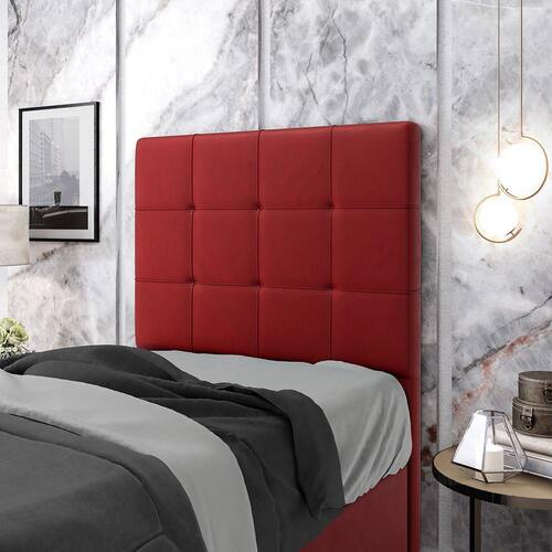 Características do Produto: Madeira de eucalipto proveniente de reflorestamento Fixação com grampos galvanizados Espuma Poliuretano D20 Revestimento: Veludo Cor: Vermelho Tamanho: Solteiro para cama box de 88 cm Possui pés: Sim Tipo de pés: 2 pés PVC de 12 cm Possui detalhes em quadriculado Embalagem: plástico bolha, papelão ondulado, malha, plástico Fixação diretamente no box através de frames Garantia de 3 meses contra defeitos de fábrica.
