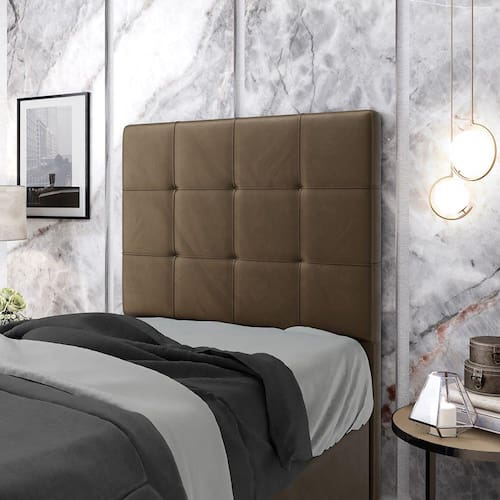 A Cabeceira Áurea foi inspirada para você, que busca um estilo mais moderno. Ela possui detalhes quadriculado e um ótimo acabamento, tudo isso com ótimo custo benefício. Possui dois pés de 12 cm e fixação via frames para a sustentação do box, não sendo necessário furar a sua cama, apenas encaixa-la nos suportes da cabeceira. Adquira já!