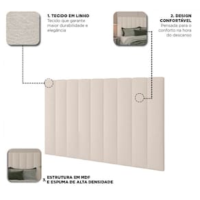 O(a) Cabeceira Box Casal Concept Linho Naturall Claro - Gelius é produzido em MDF, Espuma e Isopor na escala de brilho Fosco, e possui um grau de dificuldade de montagem: Médio.