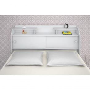 A cabeceira vem com amplo espaço interno, com 2 portas de correr, onde poderá guardar muitos objetos utilizando assim melhor o espaço de seu quarto.