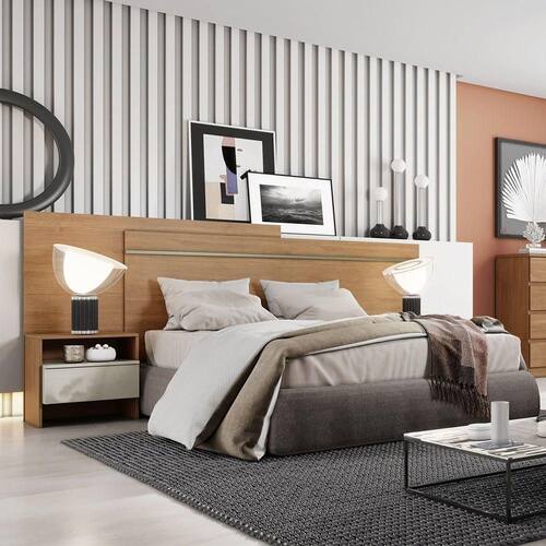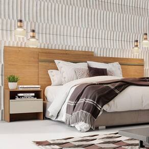 Cabeceira casal valencia expansivel para colchoes de 1,38 e 1,58, com paineis sobrepostos. Acompanha tambem 02 mesas de cabeceiras com gavetas com corredicas telescopicas e nicho. Cabeceira moderna e com qualidade para o seu quarto.