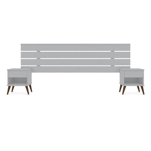 Cabeceira Box Extensível Casal/queen/king Gelius Roma Com 02 Mesas De Cabeceira - Branco Acetinado