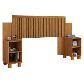 Cabeceira Box Mumbai Ripada Ajustável com Mesas Laterais e Nicho para Casal/queen - Naturale - Marrom
