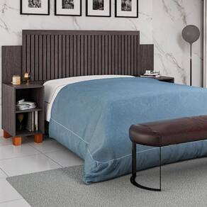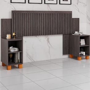 A Cabeceira Box Flex Mumbai com Nichos foi desenvolvida para quem deseja transformar o quarto em um ambiente mais moderno, sofisticado e funcional. Com painel ripado e pés em madeira na cor natural, o conjunto oferece um visual elegante e versátil, acompanhado de 2 mesas de cabeceira com nichos que facilitam o armazenamento de livros, luminárias e objetos de uso diário.