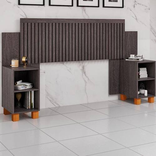 Inclui 2 mesas de cabeceira com nichos organizadores