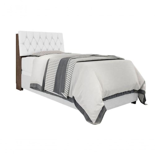 Cabeceira Box Solteiro Isis Chocolate com Capitonê Branco