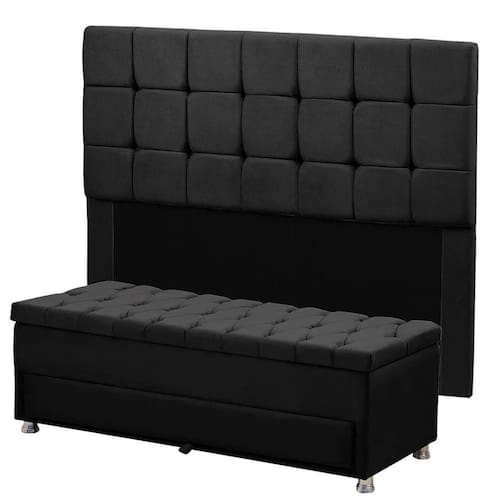 Combine a cabeceira com travesseiros e almofadas de sua preferencia e torne sua decoracao ainda mais charmosa e aconchegante. A calcadeira pode ser usada para sentar e para guardar objetos, pois ela funciona como um bau. Nao perca essa oportunidade e garanta ja o seu!
