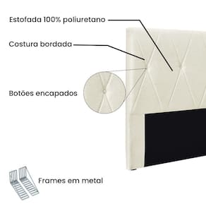 Dormir bem e manter-se seguro na hora de relaxar são fatores importantes que influenciam na qualidade do sono. Unir esses pontos com uma decoração incrível seria perfeito, não é mesmo? Que tal começar essa mudança pela cabeceira da sua cama!? A Cabeceira Aquilla sem dúvida vai roubar a cena de tão linda e aconchegante! A estrutura é feita em madeira de eucalipto, uma opção que ressalta a durabilidade e beleza da peça. A cabeceira é preenchida com espuma D23, garantindo um conforto ideal para noites mais tranquilas. Este modelo é indicado para Cama Box Casal de 140 cm, contém costura em losangos com botões encapados que conferem uma textura maleável e um visual refinado. O revestimento foi feito no Linho, um tecido de alta qualidade no tom Natural perfeita para criar uma atmosfera mais aconchegante ao local. As sapata são de plástico além de serem muito resistentes garantem maior flexibilidade e sustentação à peça. E não menos importante acompanha frame em metal que é o suporte ideal para fixar a cabeceira na cama box. O design desta peça apresenta um elemento estético sofisticado, que transformará instantaneamente o ambiente e impedirá que a passagem de temperaturas (frio/quente) que se concentram na parede, passem diretamente para o usuário. A Cabeceira Aquilla é a opção mais adequada para o seu dormitório, afinal de contas você merece o que há de melhor para completar a decoração da sua casa. Adquira a Cabeceira Aquilla antes que acabe o estoque! Dimensões da Cabeceira: Altura total: 125 cm Largura total: 140 cm Profundidade total: 8 cm Peso: 10 kg Especificações do Produto Estrutura: Madeira De Eucalipto Espuma: D-23 Tecido: Linho Tipo de pés: Sapatas Plasticas Garantia: 90 dias contra defeito de fabricação Montagem: Produto vai montado. Instruções de limpeza: Utilizar um pano limpo e levemente úmido Você irá receber: 01 Cabeceira Entregue em: 01 Volume