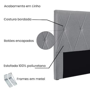 Dormir bem e manter-se seguro na hora de relaxar são fatores importantes que influenciam na qualidade do sono. Unir esses pontos com uma decoração incrível seria perfeito, não é mesmo? Que tal começar essa mudança pela cabeceira da sua cama!? A Cabeceira Aquilla sem dúvida vai roubar a cena de tão linda e aconchegante! A estrutura é feita em madeira de eucalipto, uma opção que ressalta a durabilidade e beleza da peça. A cabeceira é preenchida com espuma D23, garantindo um conforto ideal para noites mais tranquilas. Este modelo é indicado para Cama Box Casal de 140 cm, contém costura em losangos com botões encapados que conferem uma textura maleável e um visual refinado. O revestimento foi feito no Linho, um tecido de alta qualidade no tom Areia perfeita para criar uma atmosfera mais aconchegante ao local. As sapata são de plástico além de serem muito resistentes garantem maior flexibilidade e sustentação à peça. E não menos importante acompanha frame em metal que é o suporte ideal para fixar a cabeceira na cama box. O design desta peça apresenta um elemento estético sofisticado, que transformará instantaneamente o ambiente e impedirá que a passagem de temperaturas (frio/quente) que se concentram na parede, passem diretamente para o usuário. A Cabeceira Aquilla é a opção mais adequada para o seu dormitório, afinal de contas você merece o que há de melhor para completar a decoração da sua casa. Adquira a Cabeceira Aquilla antes que acabe o estoque!