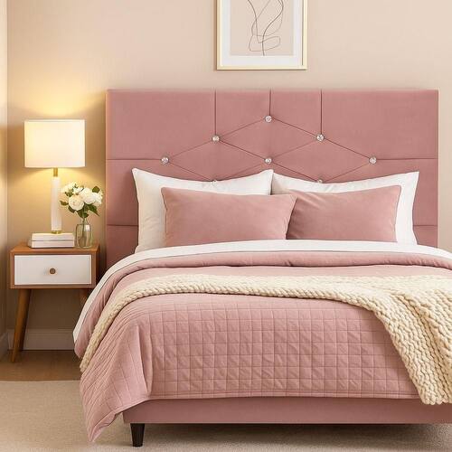 Cabeceira Estofada em Suede com Detalhes em Botonê de Cristal ? Design Elegante e Sofisticado