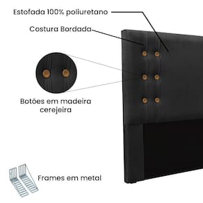 Dormir bem e manter-se seguro na hora de relaxar são fatores importantes que influenciam na qualidade do sono. Unir esses pontos com uma decoração incrível seria perfeito, não é mesmo? Que tal começar essa mudança pela cabeceira da sua Cama!? A Cabeceira Gênova sem dúvida vai roubar a cena de tão linda e aconchegante! Contém estrutura retilínea feita em madeira de eucalipto, uma opção que ressalta a durabilidade e beleza da peça. A cabeceira é preenchida com espuma D23, garantindo um conforto ideal para noites mais tranquilas. Este modelo é indicado para Cama Box Casal de 140 cm, em sua costura possui botões em madeira que conferem uma textura maleável e um visual refinado. O revestimento foi feito no Veludo, um tecido de alta qualidade no tom Preto perfeita para criar uma atmosfera mais aconchegante ao local. As sapata são de plástico além de serem muito resistentes garantem maior flexibilidade e sustentação à peça. O design desta peça apresenta um elemento estético sofisticado, que transformará instantaneamente o ambiente e impedirá que a passagem de temperaturas (frio/quente) que se concentram na parede, passem diretamente para o usuário. A Cabeceira Gênova é a opção mais adequada para o seu dormitório, afinal de contas você merece o que há de melhor para completar a decoração da sua casa. Adquira a Cabeceira Gênova antes que acabe o estoque!