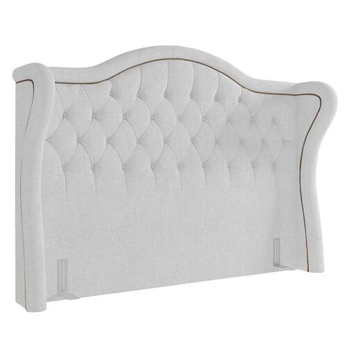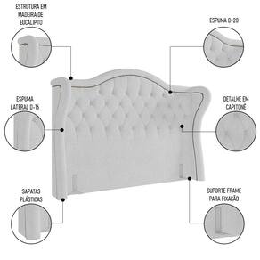 Esta Cabeceira de Casal produzida no tecido bouclé, que é um tipo de tecido caracterizado por laços e ondulações que criam um efeito de volume, muito macio e duradouro, que esbanja conforto e segurança, ou seja, além de ser um tecido leve e lindo, ainda ajuda no seu bem-estar. A estrutura é em madeira de eucalipto e forro em Kami TNT que garantem qualidade e resistência. Possui design Provençal, botões de Capitonê, um par de frames que auxiliam na instalação da cama e tachinhas que acompanham desde a borda do formato desta Cabeceira Capitonê até as laterais estofadas, agregando elegância ao produto.
