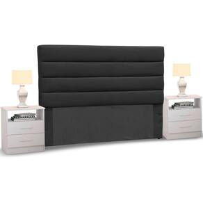 Cabeceira Cama Box Casal 140cm Greta Suede Preto e 2 Mesas de Cabeceira Flex Branco - Mpozenato