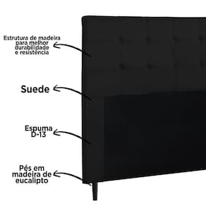 Cabeceira Cama Box Casal 140cm Luna Suede Preto Z51 - Mpozenato
