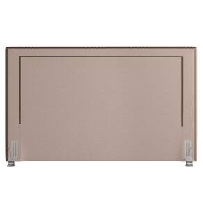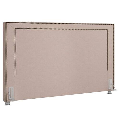 cabeceira casal estofada com espuma D20, estrutura em madeira de eucalipto e revestida com tecido linho, suave ao toque. Já os pés metalizados deixam esse produto ainda mais elegante.