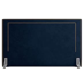 cabeceira casal estofada com espuma D20, estrutura em madeira de eucalipto e revestida com tecido veludo, suave ao toque. Já os pés metalizados deixam esse produto ainda mais elegante.