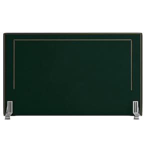 cabeceira casal estofada com espuma D20, estrutura em madeira de eucalipto e revestida com tecido veludo, suave ao toque. Já os pés metalizados deixam esse produto ainda mais elegante.