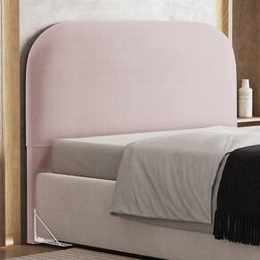 Características da Cabeceira: Estrutura em madeira de reflorestamento de eucalipto. Revestimento em Bouclê na cor Rosê. Estofamento com espuma D-18 para maior conforto e maciez. Design curvo, estilo orgânico. Pés sapatas plásticas.