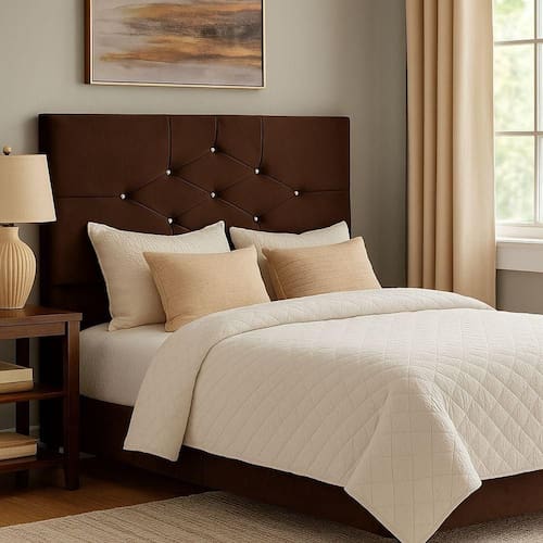 Cabeceira Estofada em Suede com Detalhes em Botonê de Cristal ? Design Elegante e Sofisticado
