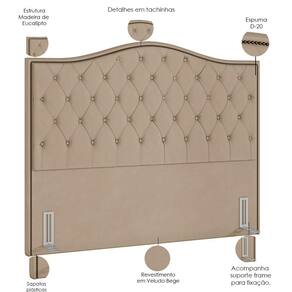 A Cabeceira Cama Box Casal King 195 cm P05 Grécia Veludo Bege - Lyam Decor é uma peça singular e elegante. Com design moderno, ela traz destaque e beleza na hora de compor seu quarto. Seus detalhes em tachas, denotam todo o cuidado e carinho na hora da produção. Uma cabeceira que trás presença, beleza e originalidade aos apreciadores do minimalismo, agregando valor aos pequenos detalhes. Com materiais de excelente qualidade e acabamento impecável, o revestimento em Veludo combina majestosamente com o restante da mobília. Podendo ser disposta com mesas de cabeceira e apoio, calçadeira ou recamier. É a composição perfeita para os amantes da elegância! Você merece o melhor, garanta já a sua!!